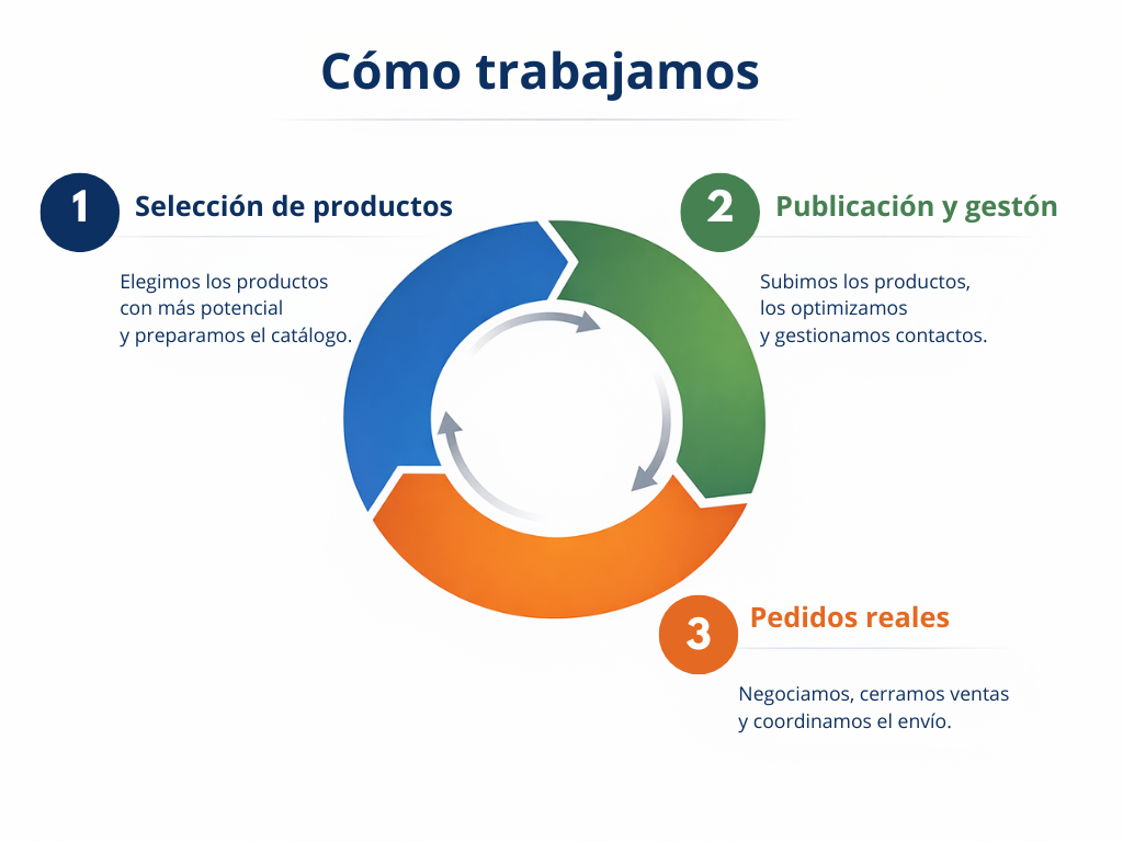 Nuestro modelo es sencillo: tú te centras en producir y nosotros gestionamos Alibaba.